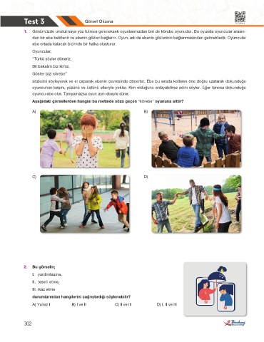 1. Günümüzde unutulmaya yüz tutmuş geleneksek oyunlarımızdan biri de körebe oyunudur. Bu oyunda oyuncular arasın-