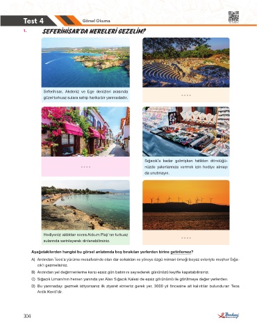 A) Ardından Teos’a yürüme mesafesinde olan dar sokakları ve yöreye özgü mimari örneği beyaz evleriyle meşhur Sığa-