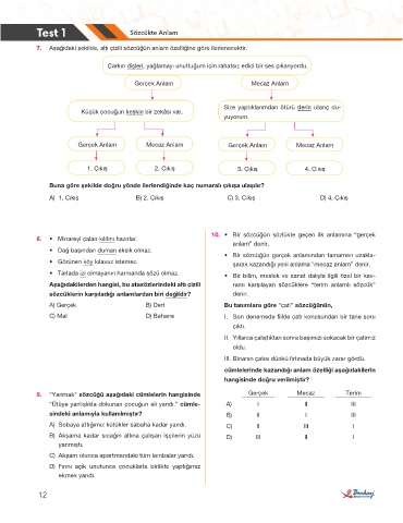 7. Aşağıdaki şekilde, altı çizili sözcüğün anlam özelliğine göre ilerlenecektir.