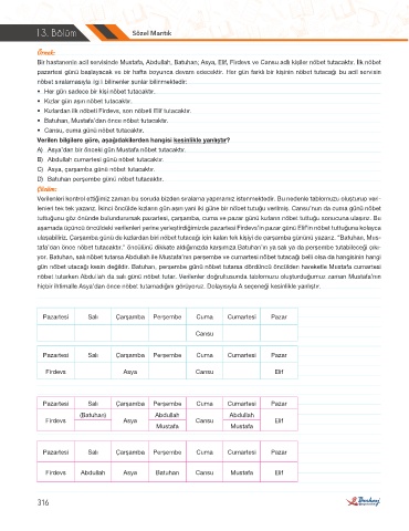yor. Batuhan, salı nöbet tutarsa Abdullah ile Mustafa’nın perşembe ve cumartesi nöbet tutacağı belli olsa da hangisinin hangi