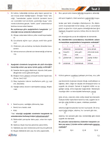 1. Bir kelime, kullanıldığı cümleye göre bazen gerçek ba- 4. Ben, gerçek şiirin insana tattırdığı duyguların, aktardığı