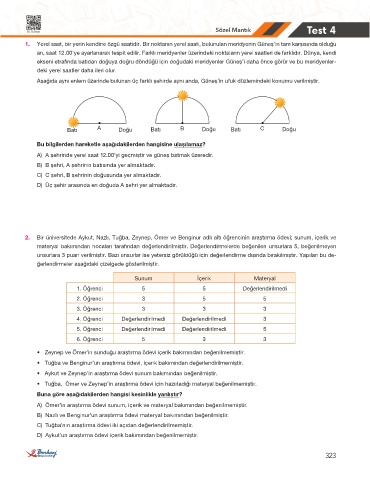 2. Bir üniversitede Aykut, Nazlı, Tuğba, Zeynep, Ömer ve Benginur adlı altı öğrencinin araştırma ödevi; sunum, içerik ve