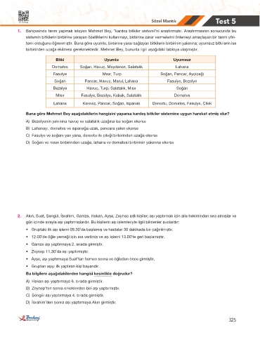 1. Bahçesinde tarım yapmak isteyen Mehmet Bey, “kardeş bitkiler sistemi”ni araştırmıştır. Araştırmasının sonucunda bu