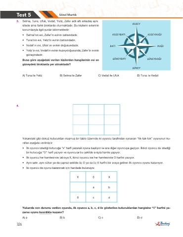 • Tuna’nın evi, Yeliz’in evinin batısındadır.