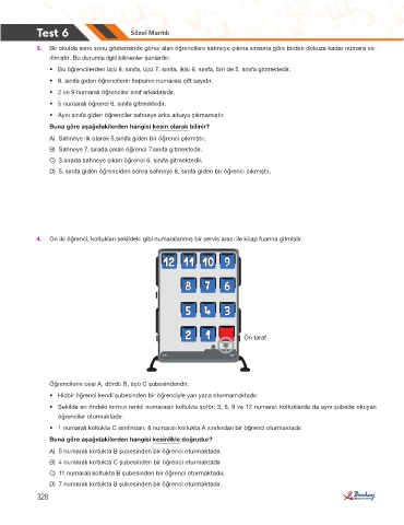 4. On iki öğrenci, koltukları şekildeki gibi numaralanmış bir servis aracı ile kitap fuarına gitmiştir.