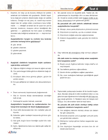 2. Aşağıdaki cümlelerin hangisinde deyim açıklama-