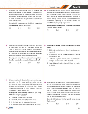 8. (I) Eleştirmen bir sanatçı değildir. (II) Çünkü eleştirmen 11. Aşağıdaki cümlelerin hangisinde karşılaştırma yapıl-