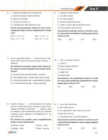 A) IV - I - II - III - V B) IV - II - III - I - V sırada yer alır?