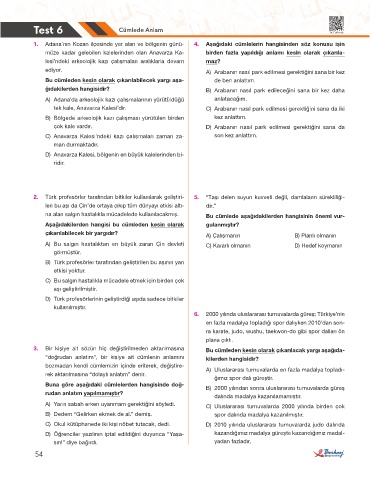 Test 6 Cümlede Anlam TK TUR-018