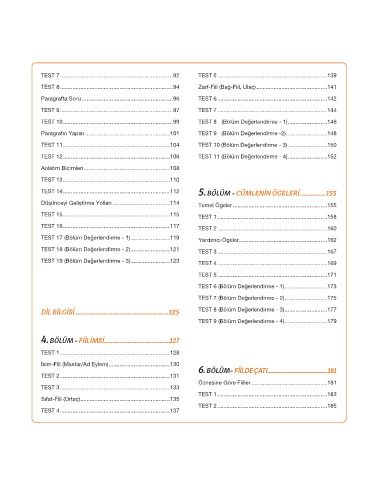 DİL BİLGİSİ ..............................................................................125 TEST 8 (Bölüm Değerlendirme - 3) ...........................177