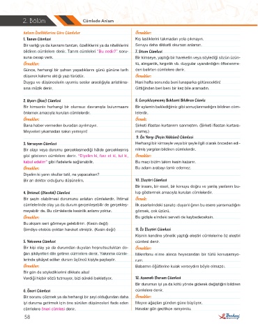 Anlam Özelliklerine Göre Cümleler Örnekler: