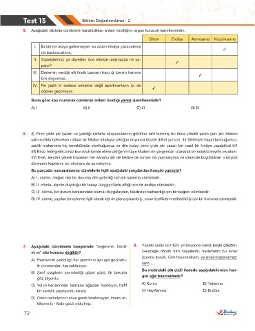7. Aşağıdaki cümlelerin hangisinde “beğenme, takdir 8. Yarınki sınav için tüm yıl boyunca canla başla çalıştım.