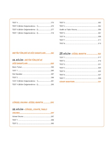 TEST 5 (Bölüm Değerlendirme - 1) ...........................275 TEST 4 ......................................................................304