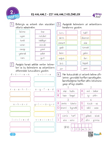 2. EŞ ANLAMLI - ZIT ANLAMLI KELİMELER Türkçe