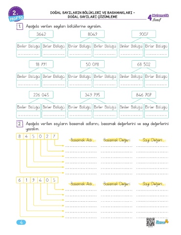 2. Aşağıda verilen sayıların basamak adlarını, basamak değerlerini ve sayı değerlerini