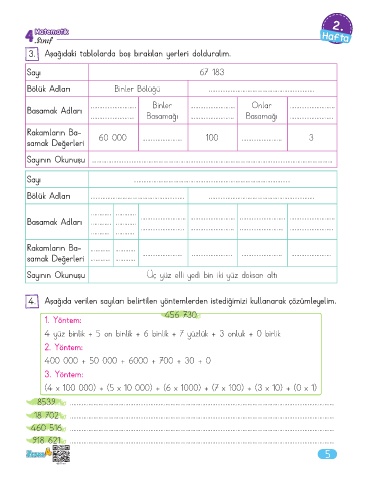 3. Aşağıdaki tablolarda boş bırakılan yerleri dolduralım.