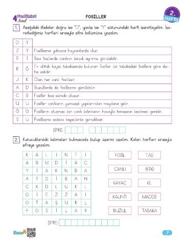 2. Kutucuklardaki kelimeleri bulmacada bulup üzerini çizelim. Kalan harfleri sırasıyla