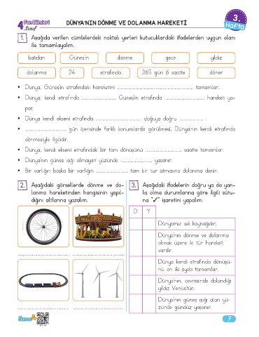 2. Aşağıdaki görsellerde dönme ve do- 3. Aşağıdaki ifadelerin doğru ya da yan-