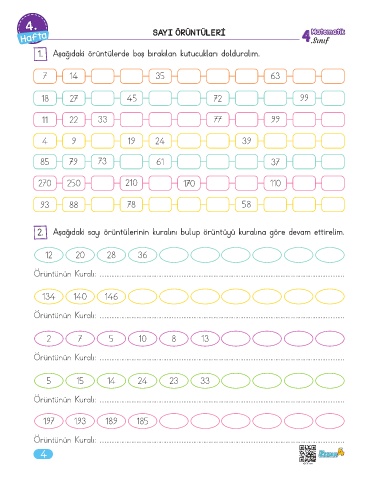 2. Aşağıdaki sayı örüntülerinin kuralını bulup örüntüyü kuralına göre devam ettirelim.