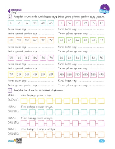3. Aşağıdaki örüntülerde kuralı bozan sayıyı bulup yerine gelmesi gereken sayıyı yazalım.