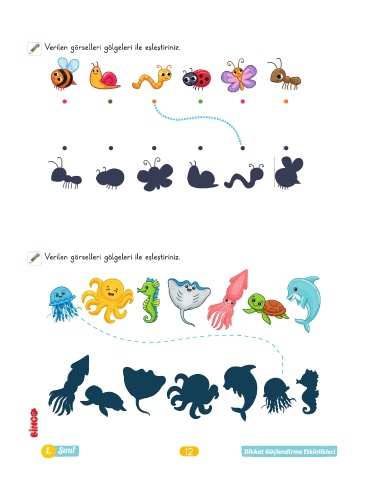 Verilen görselleri gölgeleri ile eşleştiriniz. Verilen görselleri gölgeleri ile eşleştiriniz. 1. Sınıf 12 Dikkat Güçlendirme Etkinlikleri