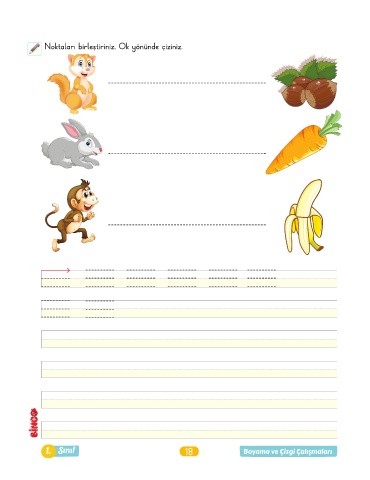 Noktaları birleştiriniz. Ok yönünde çiziniz. 1. Sınıf 18 Boyama ve Çizgi Çalışmaları