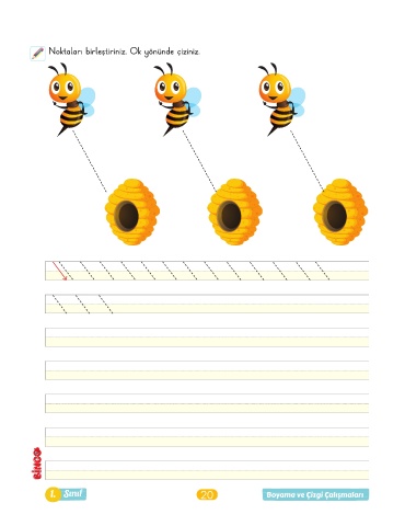 Noktaları birleştiriniz. Ok yönünde çiziniz. 1. Sınıf 20 Boyama ve Çizgi Çalışmaları