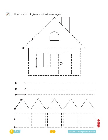 Elinizi kaldırmadan ok yönünde şekilleri tamamlayınız. 1. Sınıf 7 Boyama ve Çizgi Çalışmaları