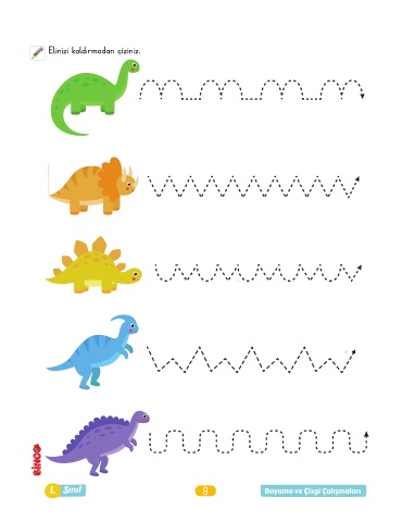 Elinizi kaldırmadan çiziniz. 1. Sınıf 8 Boyama ve Çizgi Çalışmaları