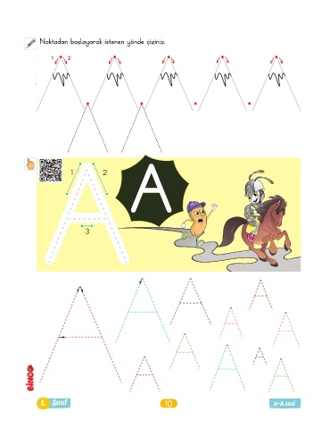 Noktadan başlayarak istenen yönde çiziniz. 1 2 A 1 2 3 1. Sınıf 10 a-A sesi