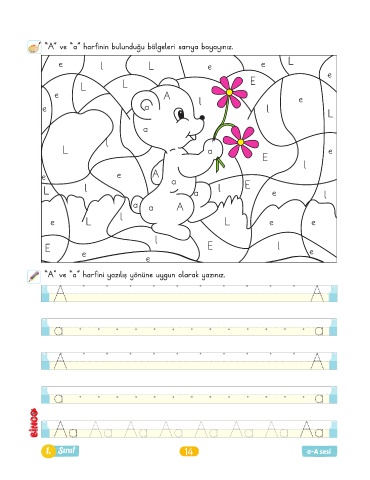 “A” ve “a” harfinin bulunduğu bölgeleri sarıya boyayınız.