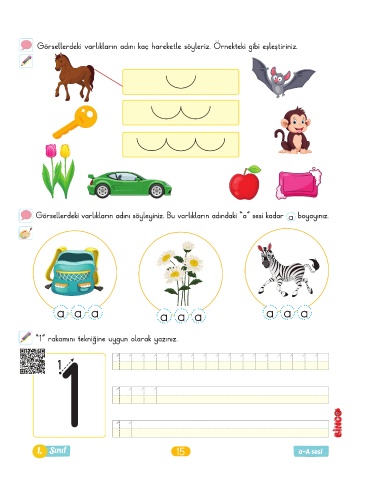 Görsellerdeki varlıkların adını kaç hareketle söyleriz. Örnekteki gibi eşleştiriniz.