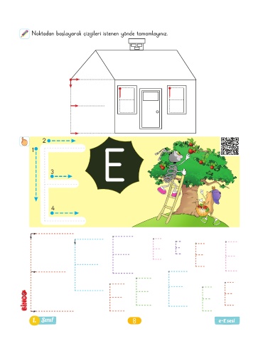 Noktadan başlayarak çizgileri istenen yönde tamamlayınız. 2 E 1 3 4 1. Sınıf 8 e-E sesi