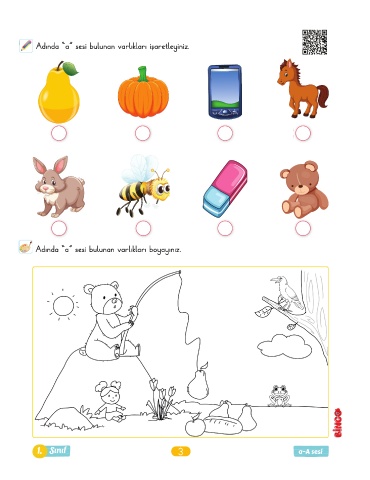 Adında “a” sesi bulunan varlıkları işaretleyiniz. Adında “a” sesi bulunan varlıkları boyayınız. 1. Sınıf 3 a-A sesi