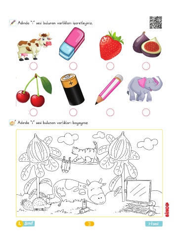 Adında “i” sesi bulunan varlıkları işaretleyiniz. Adında “i” sesi bulunan varlıkları boyayınız. 1. Sınıf 3 i-İ sesi
