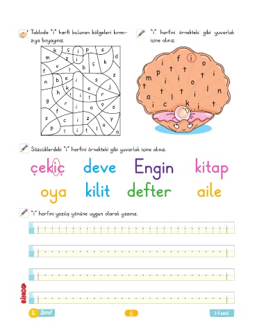 Sözcüklerdeki “i” harfini örnekteki gibi yuvarlak içine alınız.