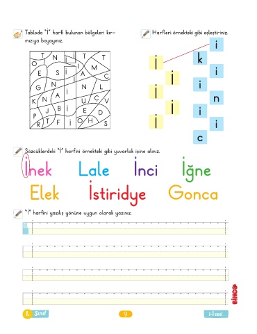 Sözcüklerdeki “İ” harfini örnekteki gibi yuvarlak içine alınız.