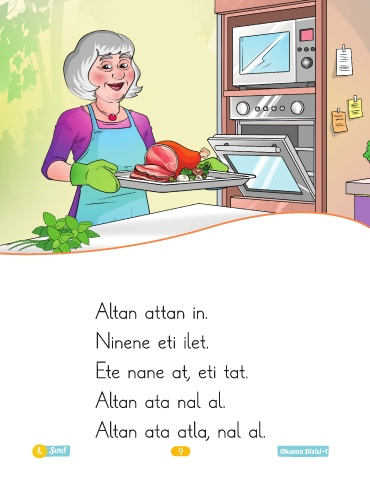 Altan attan in. Ninene eti ilet. Ete nane at, eti tat. Altan ata nal al. Altan ata atla, nal al. 1. Sınıf 9 Okuma Dizisi-