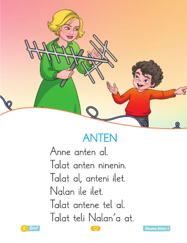ANTEN Anne anten al. Talat anten ninenin. Talat al, anteni ilet. Nalan ile ilet. Talat antene tel al. Talat teli Nalan’a at. 1. Sınıf 12 Okuma Dizisi-