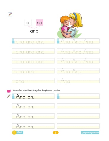a na ana ana ana ana Ana Ana Ana ana ana ana Ana Ana Ana ana ana ana Ana Ana Ana ana ana Ana Ana ana Ana Aşağıdaki cümleleri okuyalım, karşılarına yazalım. Ana an. Ana an. Ana an. Ana an. 1. Sınıf 8 Çalışma Yaprakları