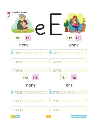 Okuyalım, yazalım. eE ne ne an ne nene anne nene nene nene anne anne anne nene anne nene anne na ne e ne nane ene nane nane nane ene ene ene nane nane nane ene ene ene nane ene 1. Sınıf 16 Çalışma Yaprakları