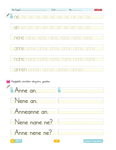 Aşağıdaki cümleleri okuyalım, yazalım.