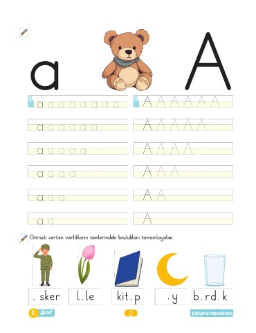 A a a a a a a a a a A A A A A A a a a a a a A A A A A a a a a a A A A A a a a a A A A a a a A A a a A Görseli verilen varlıkların isimlerindeki boşlukları tamamlayalım. . . sker l le kit p y b rd k . . . . 1. Sınıf 2 Çalışma Yaprakları