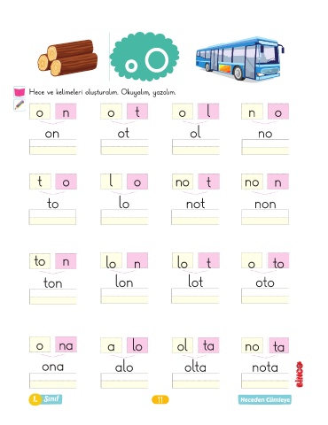 o O Hece ve kelimeleri oluşturalım. Okuyalım, yazalım. o n o t o l n o on ot ol no t o l o no t no n to lo not non to n lo n lo t o to ton lon lot oto o na a lo ol ta no ta ona alo olta nota 1. Sınıf 11 Heceden Cümleye
