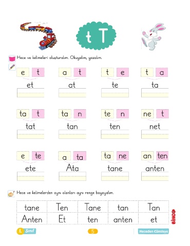 Hece ve kelimeleri oluşturalım. Okuyalım, yazalım.