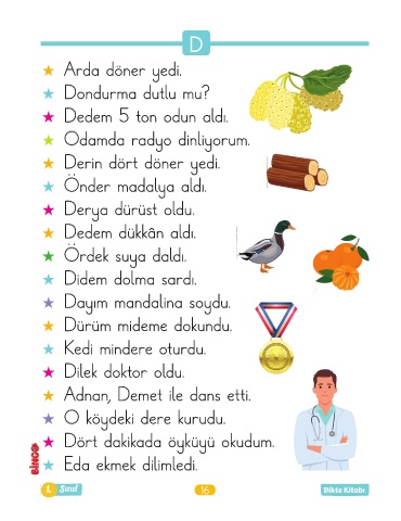 1. Sınıf 16 Dikte Kitabı