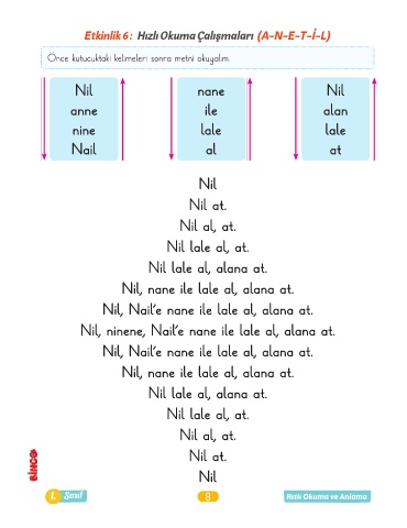 Etkinlik 6 : Hızlı Okuma Çalışmaları (A-N-E-T-İ-L)