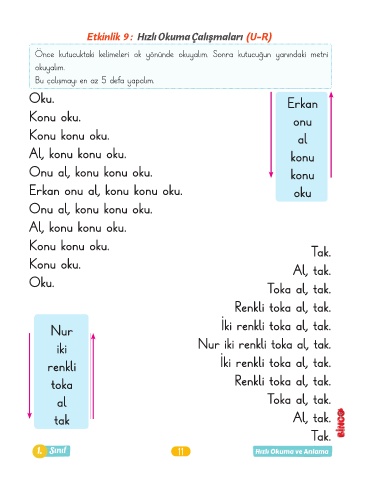 1. Sınıf 11 Hızlı Okuma ve Anlama