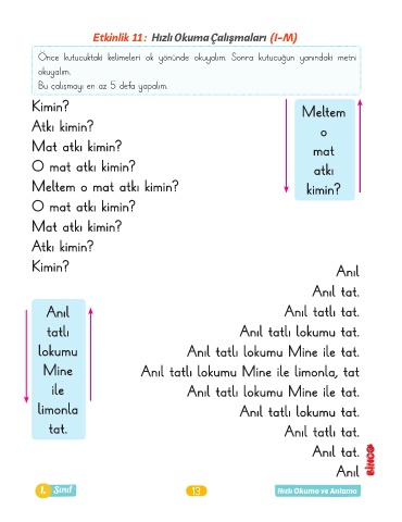 1. Sınıf 13 Hızlı Okuma ve Anlama