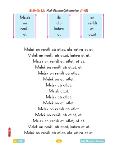 1. Sınıf 14 Hızlı Okuma ve Anlama